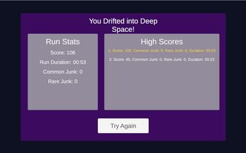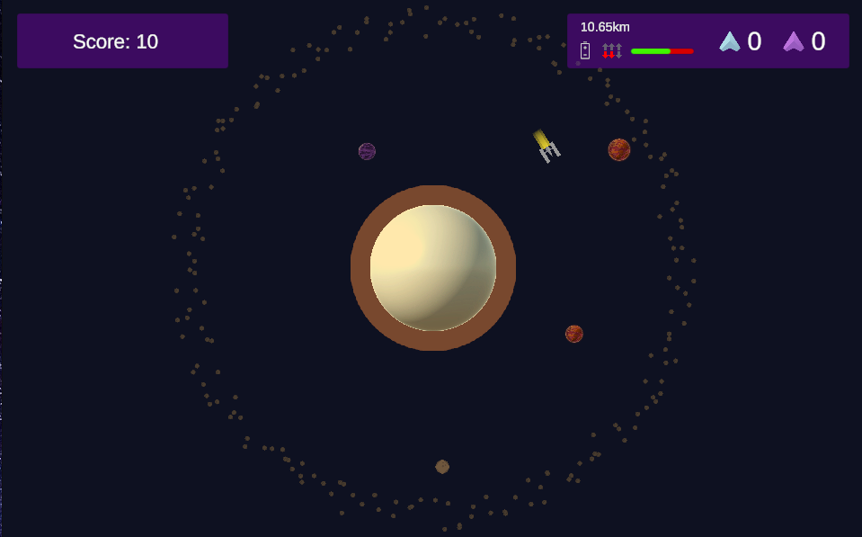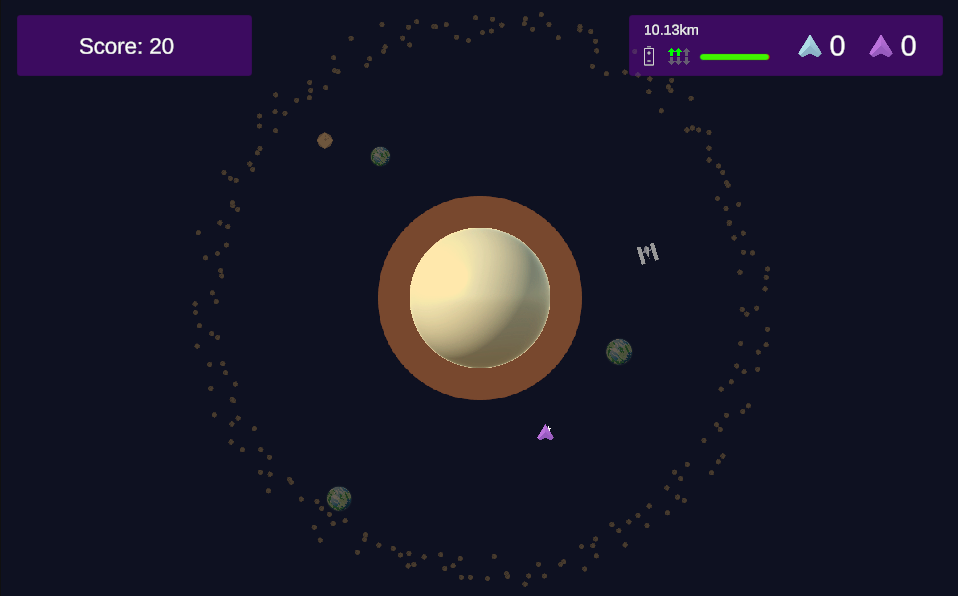 Use the gravity from your star, thrust, and rotation to navigate through space. Drift too far from the star and you'll be lost to deep space - but get too close and you'll burn up!